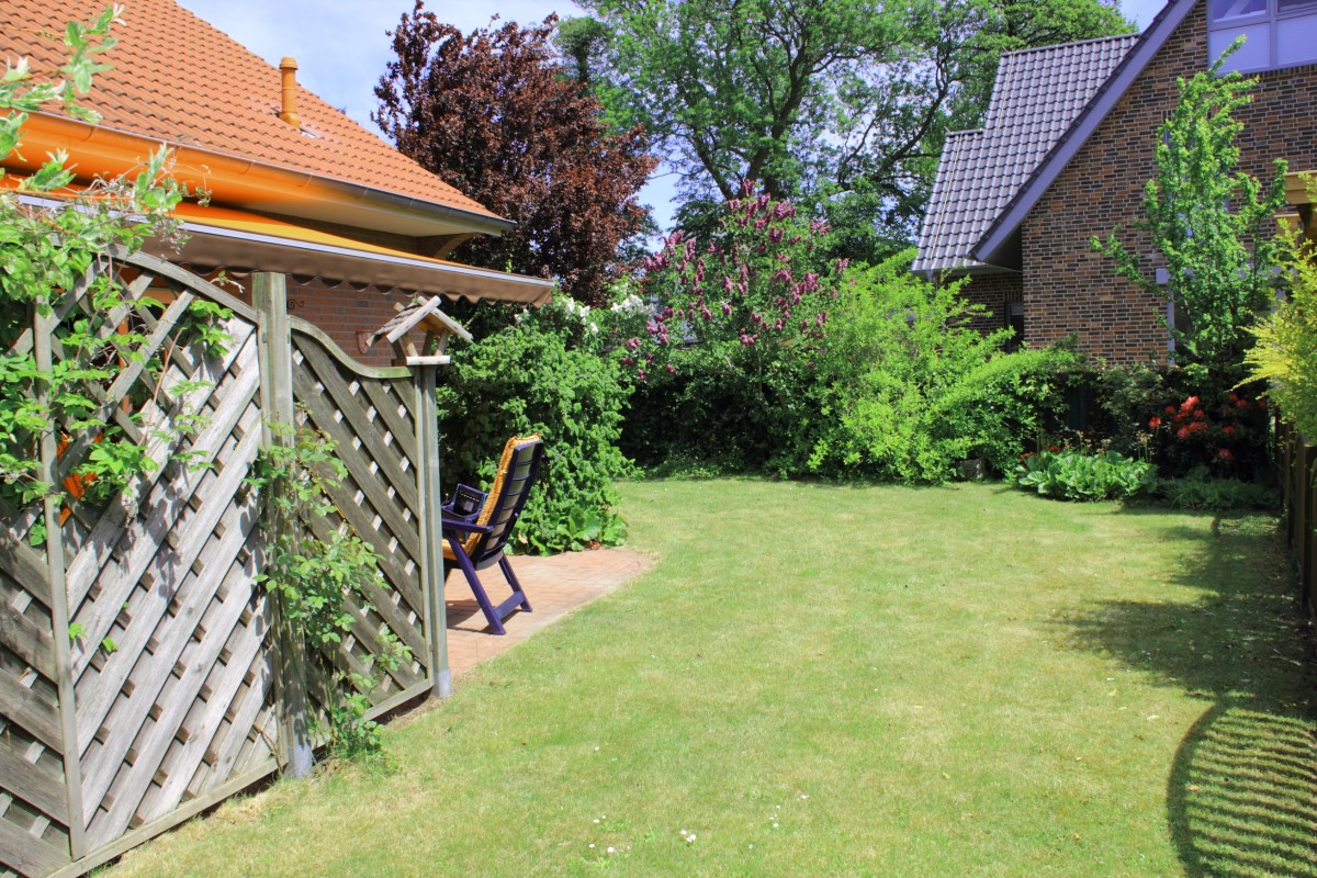 Terrasse mit Möbel + Auflagen sowie großer Markiese